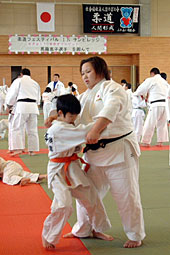 ▲馬籠選手と稽古する子どもたち――サンビレッジ近江八幡で――