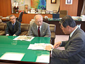 国土交通省では、中村市長と小林議長が地図を広げ、谷口博昭技監と菊川滋高速・有料道路担当官房審議官に、同市にとっての必要性を説き、事業採択とアクセス道路の整備支援を求めた。
