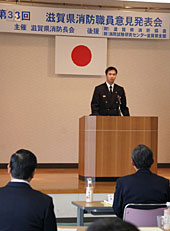 二十一日、東近江消防本部で開かれた「第三十三回滋賀県消防職員意見発表会」で愛知消防本部の植田慎司消防士(26)が入賞に選ばれ、四月二十二日京都市で開かれる東近畿地区大会に県代表として出場する。
