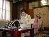 「三十五年間つれそった嘉田艮平とそれぞれの道を歩む決意をし、咋日離婚届を提出しました。プライベートなことですが、県民の皆さんの負託を受けた知事として、皆さんにお知らせさせていただきます。知事選挙に出ることを決意した時点から、私は大好きな滋賀県/琵琶湖と結婚する覚悟でした。一昨年七月の知事就任以降は、プライバシーもなくなり、つれあいには迷惑をかけたと思います。夫には研究者として自らの研究や後進の指導をするという人生があり、それに加えて、知事の夫という立揚を同時にお願いすることは心苦しいことでした。お互いの人生を悔いのないものにするためには、このたび、ふたりの子どもが独立した、という機会もあり、このようにさせていただきました。なお、名前は嘉田由紀子のままです。嘉田良平と結婚し、嘉田由紀子として、嘉田家の人たちに見守られながら二人の子どもを育て、仕事を続けてきた、という長い道のりがあり、嘉田由紀子という名前に愛着と誇りを持っているからです。この離婚は前向きに、お互いの人生を考えて、より良い選択だと納得した結果です。夫には、これまでの人生を支えてきてもらったことに心から感謝しています。大変すばらしい人なので、新たな人生でも、充実した時間を過ごし、幸せになっていただいきたいと願っております。大切な友人として今後も見守ってほしい、と思っています。私としては、これを機に、さらに、知事としての責任をはたすため、全身全霊をこめて、滋賀と琵琶湖の未来のために仕事をしていく覚悟です」。