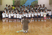 ▲きょうの市民の歌まつりのために練習を重ねてきた八日市幼稚園児