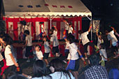 会場となったスーパーの跡地では、うどんや焼き鳥などの模擬店とステージショーが開かれた。ステージには、地元の児童・生徒によるよさこい音頭のほか、二胡演奏や大道芸が披露され、盛んに拍手が送られていた。