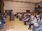 続いて、ペンネーム“あきれい”で執筆活動を続けている作詞家の鈴木玲子さん(市子殿町生まれ、大阪在住)が、同窓生の声援を受けつつ「いくつになっても変わらないものがある。それは、ふるさとへの思い」だと強調し、郷土愛をしたためた一作を披露した。