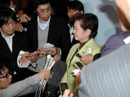 この中で、「国民の生活が第一」の小沢一郎代表の合流で自民党から「実態は小沢新党」と批判されていることに、「女性、若者の声を反映できるような仕組みを取り込む」「(小沢氏の)過去の経験は尊重する。その上で未来に向けての仕組については私が責任もって判断する」と反論した。