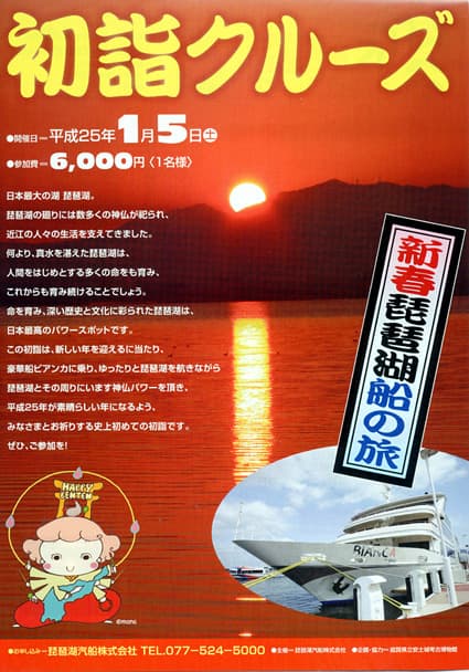 琵琶湖汽船(大津市)は、来年一月五日開催の「初詣クルーズ」の参加者を募集している。