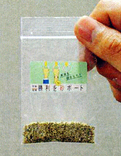 このサポートは、平成十七年から配布を始め、毎年、合格を果たした受験生から返却された「ご利益の砂」を混ぜることで、年々ご利益が高まっているという。