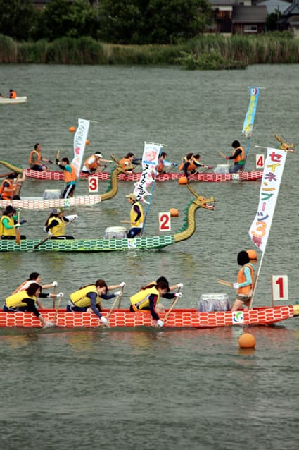 20日には同会場で、東近江市体育協会創立10周年記念「第9回東近江市ドラゴンカヌー大会」が午前8時から開催される。市民の部に34チーム(自治会)、親善の部に一般28チーム、同女性12チームの74チームが白熱のレースを繰り広げる。荒天の場合は27日。