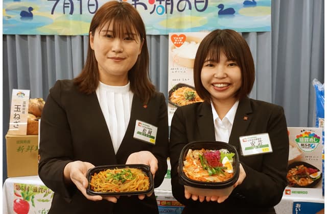 【全県】 県が制定する7月1日「びわ湖の日」にちなみ、県と連携協定を締結している平和堂(本社・彦根市西今町)とローソン(本社・東京都品川区)が「びわ湖の日」の前後で県産素材を用いた商品を販売する。