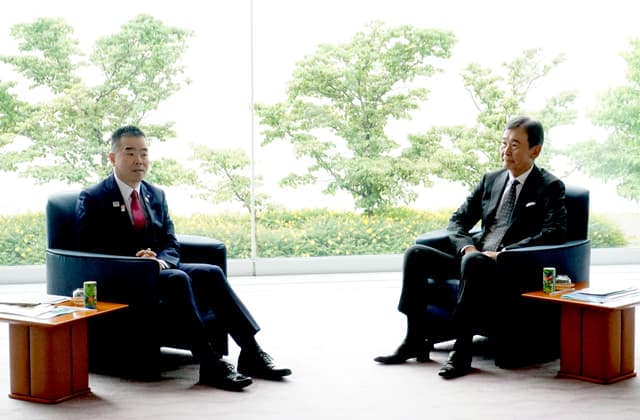 また、三日月知事は現在、彦根城を「平和の時代の城と城下町」としてユネスコの世界遺産登録に向け施策を進めていることなどを都倉長官に伝え、都倉長官からはものづくりの“たくみ”について聞いたことを紹介し、「文化庁とは文化財や芸術を守ったり保存・活用することに連携して取り組んでいきたい」と述べ、「世界から見た滋賀について文化庁と情報交換することは。滋賀の文化芸術を磨くきっかけになる。こういうやり取りを今後も重ねていきたい」と期待を寄せた。