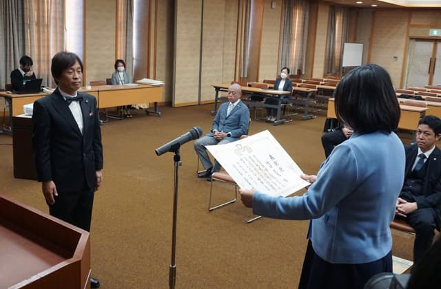 式典では大杉住子副知事からそれぞれに表彰状や認定証が贈られた。また、大杉副知事は三日月大造知事からの祝辞を代読し「県の強みであるモノづくりを発展させ、県内産業を振興していくためには、熟練技能者の匠の技とモノづくりの真髄を多くの人、特に若い世代に継承していくことが大切だ。今後、各種技能振興事業や職場体験等の場での技能実演や指導に力添えしてほしい」と述べた。