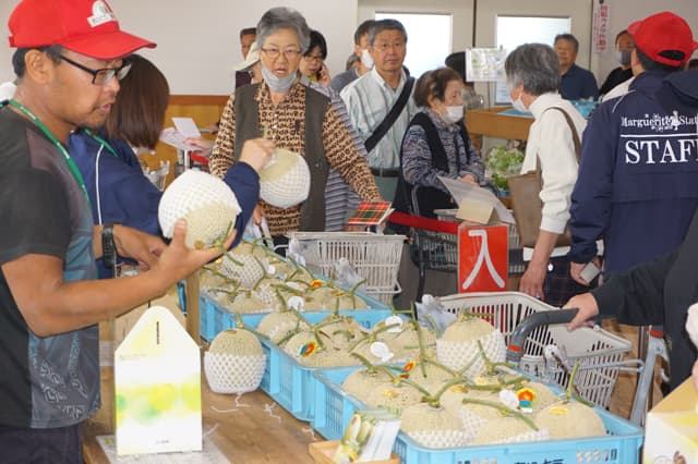 同組合の森嵩平組合長は「今年も、あと味すっきりのさわやかな甘さと香りのメロンができたので、ぜひ楽しんでほしい」とPRしていた。