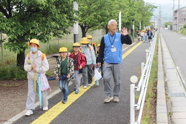 【東近江】 「民生委員・児童委員の日」である5月12日、東近江市内では同日朝、民生委員児童委員(291人)による小学生の登校見守り活動があった。