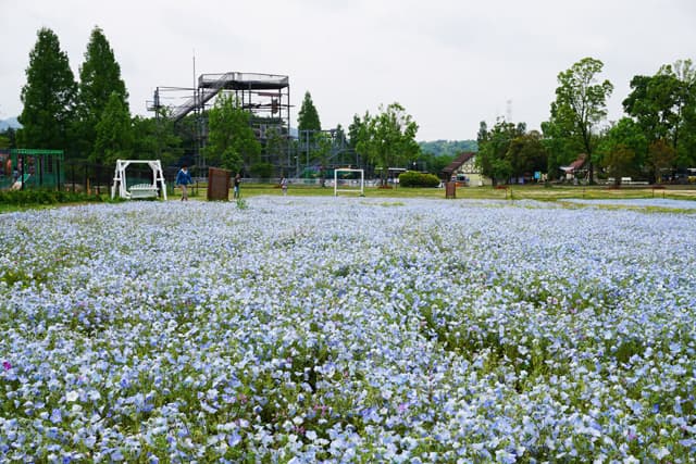 【日野】 滋賀農業公園ブルーメの丘(日野町西大路)でネモフィラが見頃を迎えている。見頃は5月末頃まで。