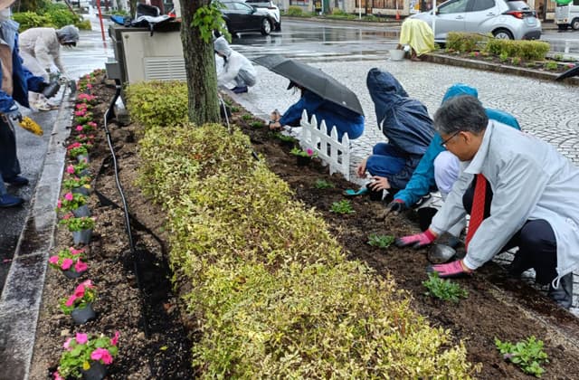 駅前花壇で花の植え替え テーマは「華 みんなの心に元気を」