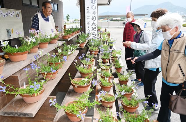 保存会会長の成田傳良さん(73)は「今年は、花の開花時期に高温、低温の気候の変化により成長が早かったものと遅かったものがあり、中には、鉢全体の3分の1程度枯れた花苗もある世話の難しい年になりましたが、郷土の大切な草花なので愛情込めて育ててきました。水管理に目が離せない、もともと栽培が難しい草花で、難しいからこそ育てるおもしろさや楽しさがあります。会員の高齢化が進み、私が一番若いですが、むしゃしんどうの良さを広く伝えていきたい」と話している。